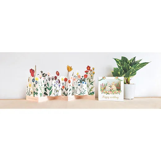 This card unfolds from side to side. When displayed, it resembles a flower garden.