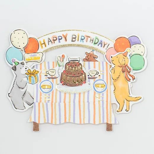 Celebrate a birthday around the table! This card creates a lively, three-dimensional scene like a miniature. The message section is located below the table.
