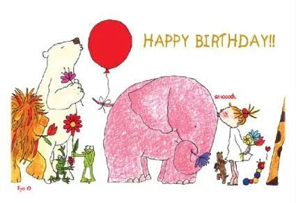 This birthday card features a small hole on the front, revealing the illustration inside.